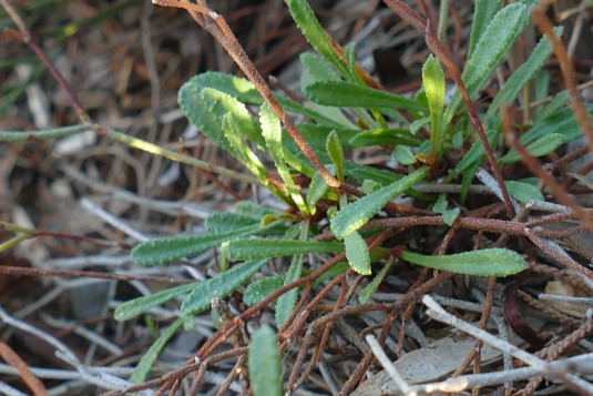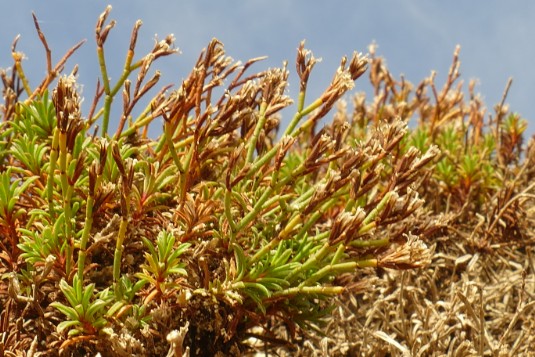 E' pianta pulvinata con fusticini corti e molto appressati.Foglie per lo più spatolate e crassulente, che presentano piccole escrescenze nella pagina superiore.
