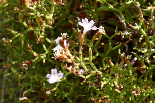 Limonium multifurcatum : è pianta con modesti fusticini basali: le foglie , spatolate presentano sulla pagina superiore delle piccole escrescenze dette perciò verrucose . Vive su ghiaie o sabbie in prossimità del mare .Presente in territorio della Costa Smeralda, è pianta endemica sarda.