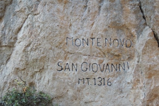 Dopo alcuni Km di sterrata si arriva alla base del torrione calcareo di Montenovo , alto 1316 mt.