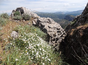 I bianchi Cerastium supramontanum, i gialli Alyssum tavolarae,( oggi Odonthorrhena tavolarae) , gli spinosi Astragalus genargenteus, alcune varietà di Helianthemum, cespluglietti striscianti di Ziziphora sardoa(Clinopodium), la Ephedra nebrodensis, chiamata in loco " Erva 'e 'entu nodos ".
