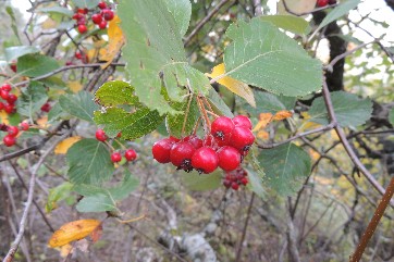 Arenaria bertolonii, il Ramnus alpinus, l'Acer monspessulanum ed il raro Sorbus aria che troviamo in frutto ad ottobre.