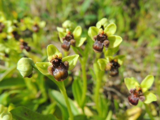 Labello arrotondato , scuro, con apicolo poco visibile.