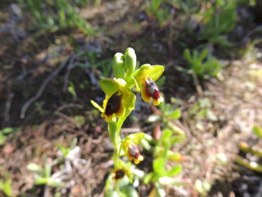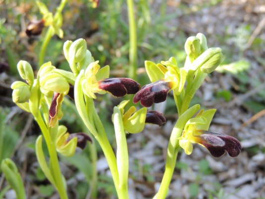 Ophrys apifera ,Ophrys bombyliflora , Ophrys exaltata subsp.morisii, Ophrys fusca subsp.funerea ,Ophrys fusca subsp. ortuabis, Ophrys holoserica subsp.annae, Ophrys holosericea subsp.chestermanii , Ophrys incubacea subsp. incubacea , Ophrys iricolor subsp. eleonorae , Ophrys lutea subsp. corsica, Ophrys normanii, Ophrys panattensis , Ophrys passionis subsp.garganica,Ophrys scolopax subsp. conradiae , Ophrys speculum , Ophrys panormitana subsp.praecox , Ophrys subfusca subsp.lepida, Ophrys subfusca subsp.liveranii ,