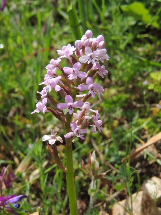 La Orchis brancifortii è una piccola piantina con fusto delicato alta poco più di 20 cm, con foglie verdastre e numerosi fiori rosa.