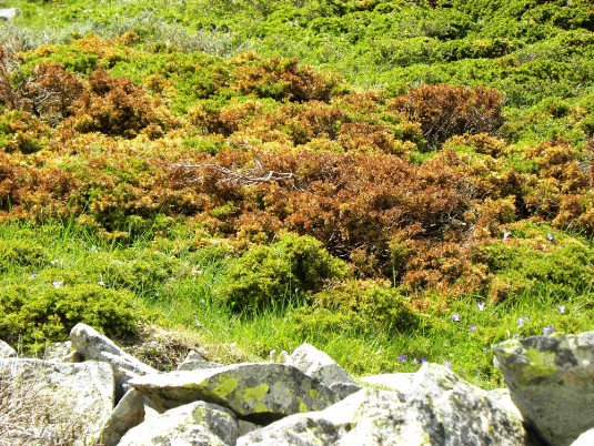 Il ginepro nano, Juniperus communis ssp nana è presente in abbondanza e caratterizza l'habitat del Gennargentu insieme a vaste aree dell' aromatico timo , Thymus herba-barona ed a distese di felci soprattutto nelle zone più fresche.