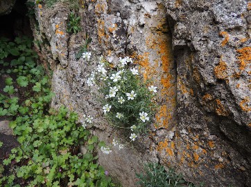 Arenaria bertolonii, il Ramnus alpinus, l'Acer monspessulanum ed il raro Sorbus aria che troviamo in frutto ad ottobre.