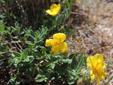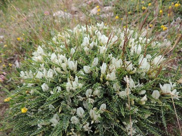 I bianchi Cerastium supramontanum, i gialli Alyssum tavolarae,( oggi Odonthorrhena tavolarae) , gli spinosi Astragalus genargenteus, alcune varietà di Helianthemum, cespluglietti striscianti di Ziziphora sardoa(Clinopodium), la Ephedra nebrodensis, chiamata in loco " Erva 'e 'entu nodos ".