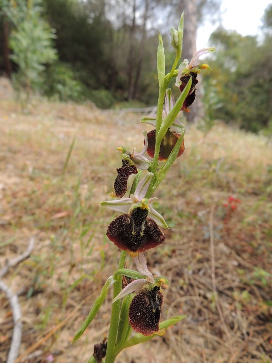 L'orchidea Ophrys chestermanii, ha un fusto slanciato con pochi fiori ma molto grandi.
