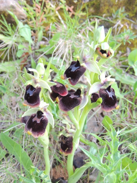 Ophrys apifera ,Ophrys bombyliflora , Ophrys exaltata subsp.morisii, Ophrys fusca subsp.funerea ,Ophrys fusca subsp. ortuabis, Ophrys holoserica subsp.annae, Ophrys holosericea subsp.chestermanii , Ophrys incubacea subsp. incubacea , Ophrys iricolor subsp. eleonorae , Ophrys lutea subsp. corsica, Ophrys normanii, Ophrys panattensis , Ophrys passionis subsp.garganica,Ophrys scolopax subsp. conradiae , Ophrys speculum , Ophrys panormitana subsp.praecox , Ophrys subfusca subsp.lepida, Ophrys subfusca subsp.liveranii ,